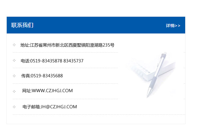 地址:常州市新北區友邦商務大廈1幢16、17層  電話:0519-85101652  傳真:0519-85112595  郵編:213022  網址:www.cz-jiayue_cn.gaoyuanxue.com  郵箱:xiajifengaa@163.com